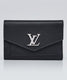 The Mylockme compact wallet in supple calf leather references the key signatures of the Lockme handbag: the envelope-style flap, the front pocket and the LV Initials accessory. Small enough to fit into any Lockme bag, this space-efficient design offers an array of pockets and credit card slots, including a zipped pocket for coins.