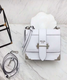 Made of calf leather, it is defined by the metal hardware decorating the front and shoulder strap.