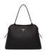 The Prada Matinée handbag made of Saffiano leather stands out for its metal triangle logo and detachable adjustable leather shoulder strap.